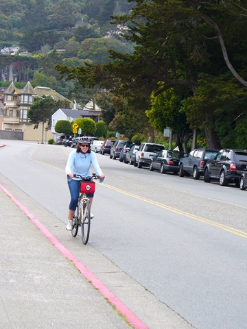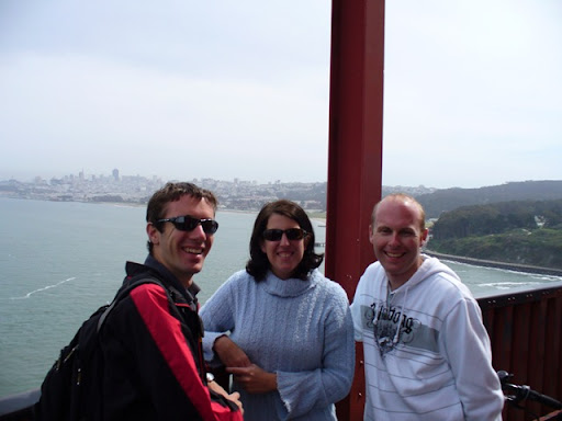 So, the bike ride was tons of fun. We took it slow, stopping at all spots and taking far to many photos. I am really doing my best to limit the pics selected for display. Golden Gate Bridge was, well, interesting. We rode across it and then took a Ferry back with the bikes. Very cool. Well, below are a couple of pics of us on the tour.